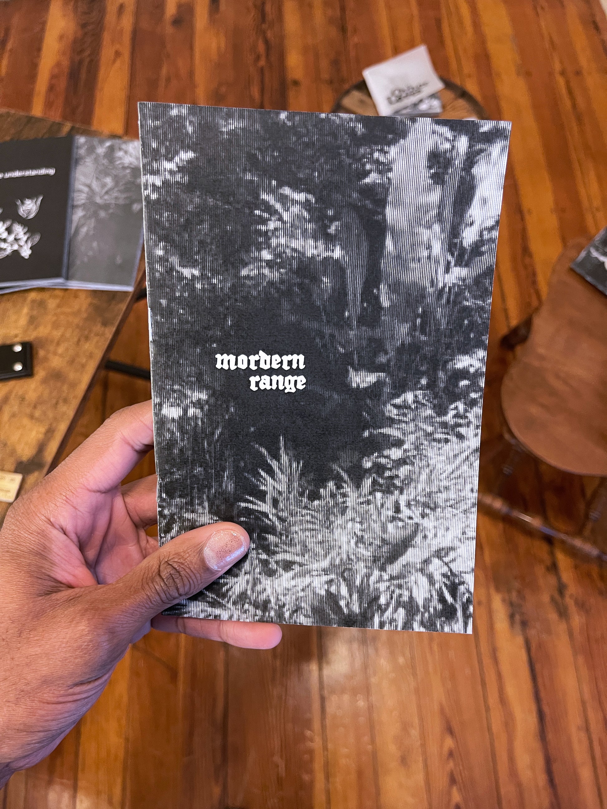 Rodell Warner's very first self-published booklet, Mordern Range is a collection of cell-phone photos, images found online, and texts written anonymously in public places. Compiled and issued in 2011.
