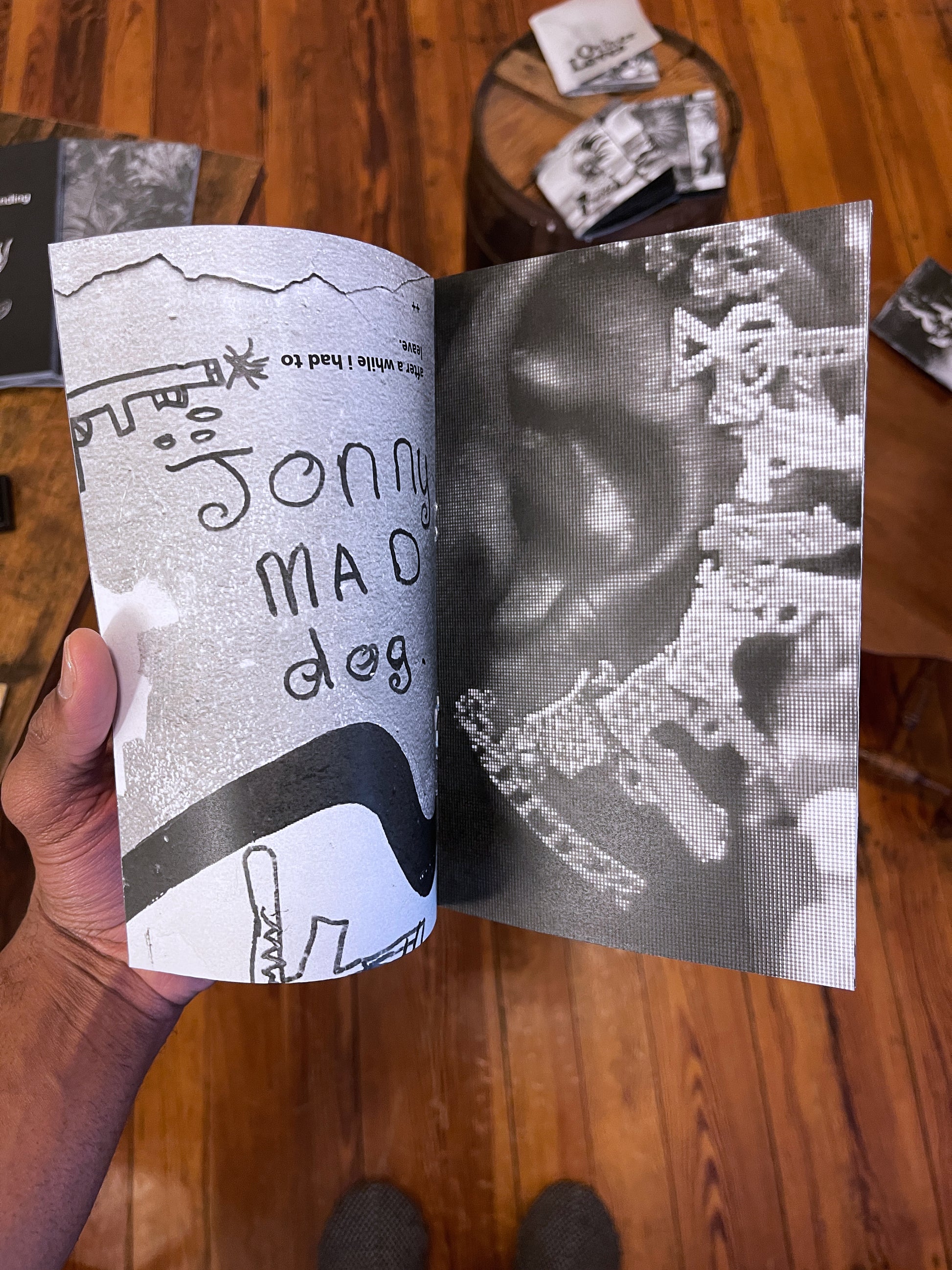 This zine contains 16 xeroxed pages, measures 5 x 8 inches when closed, and is saddle stitched and signed at the back.